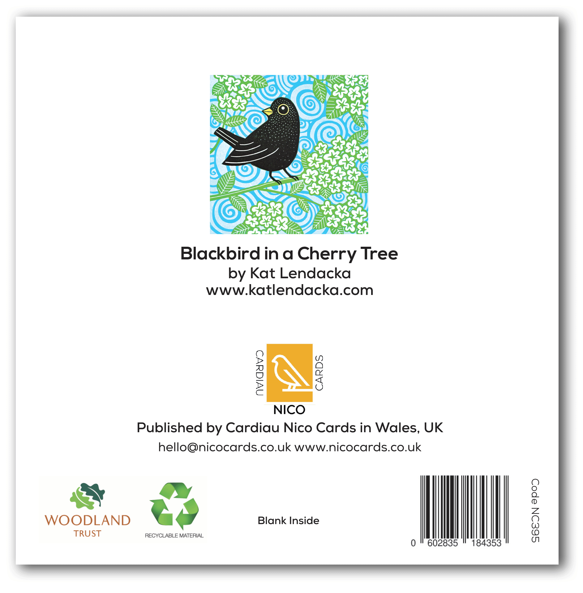 NC395 Blackbird in a Cherry Tree - Kat Lendacka